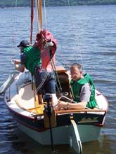Kenny, of Cootie Boat fame, sailed his PDRacer – a first at a Lake Pepin Messabout. |