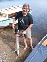 Greg Peterson with his IMB - Chad and Ruth's Dovekie in the background. |