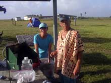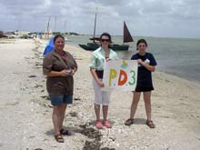 When we got to the beach here is what we found: a welcoming party consisting of Jason Nabor's wife and daughter and Graham's granddaughter with a poster.