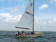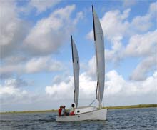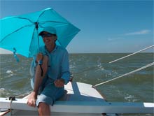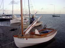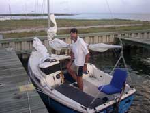 Bobby Chilek in his beautiful Bolger Bobcat gets ready for another day of sailing.