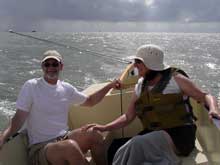Charlie and Laura seem to be pretty pleased with Traveler - here is a shot that Charlie took of Laura at the helm one day.