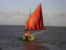 Here is Chris Tomsett heading for the finish line in his Harpoon 5.2. Chris is working on John Welsford's 6 Metre Whaler for next year.