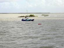 The charts all show the water to be one foot deep within several hundred yards of Panther Point, but we found four or five feet there. We stopped to wait for Kellan and walked around a bit. After about 30 minutes Kellan sailed by so we headed out after him. On the Radio we heard lots of talk about big swells where the ICW crosses San Antonio Bay. We were glad to be in the lee of the island.