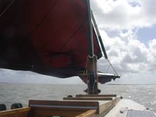 Once into San Antonio Bay, we sailed on telling Kellan we would wait at Panther Point. The wind piped up quite a bit and a single reef in our 200 square foot main did not seem like enough, so I scandalized it by tying the forward end of the yard down to the boom making it something like a really baggy lateen. It looked terrible, though and we were glad no one else was around.