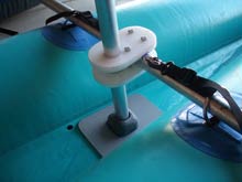 I bought the smallest fishing pontoon boat I could find and reinvented the pontoons as amas. They were larger than I would have preferred – I was concerned about too much wetted surface - but they were the most readily available option. I’ve seen smaller inflatable amas for sale on the internet, but in the demo videos they usually seem to be more or less submerged much of the time, which doesn’t strike me as the best low-drag option, either. Once I had the pontoons inflated and sitting alongside the kayak they didn’t look bad, but they were big, so now I was more concerned about windage. As an option, I designed the akas (cross-beams) so that either ama could be removed, converting the boat into an impromptu proa. Fortunately, most of the T200 will be more or less downhill, so windage shouldn’t be a disadvantage for most of the course.