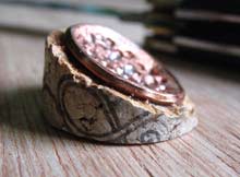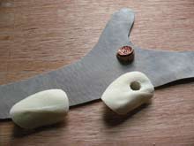 With the tip of your knife, slightly hollow out that cut end so the penny nests in there neatly. Fix it in place with your favorite superglue.... |