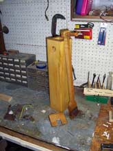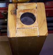 I put the pump together in a couple of relaxed evenings, using some Alaska Yellow Cedar, hardwood of indeterminate species and leather (for the valves) from some old snowshoe bindings I’ve since replaced. The plans suggest using ½” Cedar or Pine, for the box, with a hardwood handle.