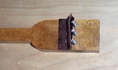 I really wasn’t sure about what to use for the leather, but as I said, I had those old leather bindings just sitting there…..so they were sacrificed! (I knew I kept them for a reason.) The plans say that the leather should be flexible, but I’ve no idea how thick or what kind of leather they would have used. |