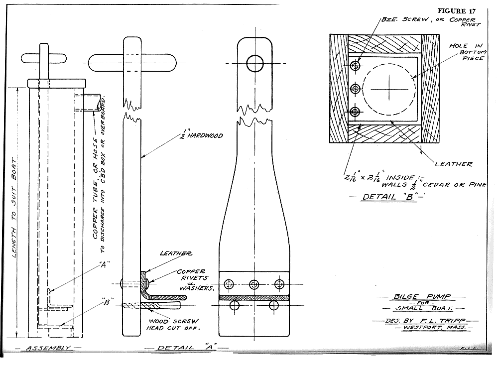 The pump design needs to be attributed to F.L. Tripp, of Westport, Massachusetts. I’m not sure if F.L. is still around, but it looks like his family is still in the boat building business.