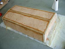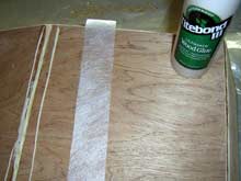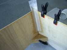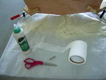 A new and interesting method has been developed for use in small boat construction, the Tape & Glue method, in which the boat hull is first assembled with simple homemade fixtures, the outer seams Taped with Duct Tape (or equivalent), to hold the structure together, and the seams glued with a waterproof wood glue. It should be noted that the boat designer must consider this process during the concept stage, as the various hull parts must fit firmly together for the process to be effective. The glue is allowed to cure, overnight preferred, after which the taping process begins on the interior joints. The tape used is a Polyester Woven Fabric, specifically designed for the roofing industry. It is lightweight, flexible, strong and waterproof.
