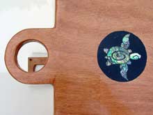 Some paua shells, a spoon full of black sand, and clear polyester make a nice eye-catcher on the foredeck. |