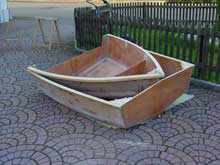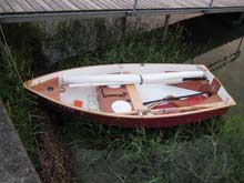 I am living about only 700 m away from the shore. So, the easiest option is to walk the boat on a garden trailer to a public spot on the shore, take it over the shoulder and assemble and rig it in knee-deep water. The idea of a nesting dinghy with the advantage that the hull halves are easily carried by a single person intrigued me, so I looked for plans. I found two very good designs: Danny Greene’s Chameleon, which is slightly biased towards rowing, and B&B’s Spindrift series, slightly biased towards sailing. And I found a lot of good advice from builders and contributors on this page.