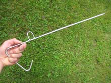In most grounds, the holding force of a small commercial folding anchor is not convincing. When I am rigging the boat in knee-deep water, I use this lightweight ground nail. It only took some stainless steel scrap rod and some minutes of welding to make it. |