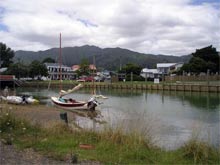 Coromandel has a large harbour, much of which is shallow. The town is tucked up in the NE corner, where there are extensive area’s of mudflats and mangroves. Shallow draft vessels can follow a narrow channel right up to the town for a couple of hours either side of high tide. Larger boats anchor off a mile or so, and use their tenders for the trip. The previous day someone had counted 58 ‘rubber ducks’ at the landing at high tide. It was nowhere near as busy when we got there, and proved to be a marvelous place to visit. The township itself was buzzing with holidaymakers and tourists. At the landing was a water tap and rubbish drop-off, directly across the road a petrol station, and just around the corner, 'The Coromandel Smoking Company’ famous for it’s amazing array of smoked fish. We visited them all, as well as the local supermarket. Tres convenient.