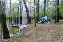 Camp along the Neches. The high-water mark from the last flood is clearly visible. |