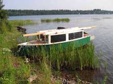 After a frenzy of last minute boat building we finally left home 4 hours late. With the maiden voyage only 4 days hence we were embarking on a 450 mile journey to the Spanish River on Lake Huron’s North Channel for a few days of sailing and camping. Excited for an adventure and with the weather forecasted to be sunny with light winds it seemed we would have a pleasant voyage. Actually it turned out that 3 days and 2 nights of this “vacation” was all we could take. After leaving our children, Amy (8) and David (5) with Grandpa and Grandma we were ready to begin. The car trip was uneventful - the boat managed to stay on the trailer. It only took 3 stops to find a place to launch. We went to the public marina first, but the ramp was so steep it would have launched not only the boat but our car also. The second ramp was unattended and we just didn’t feel right about leaving our car and trailer parked on the grass in front of the office for an indeterminate period of time. The third stop had the best of both - the ramp was okay and somebody was available to take our money.