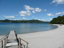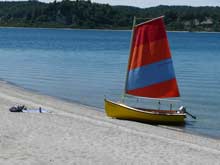 There’s clear water with little/no weed. Sandy beaches slope gently to a sandy lake bed, easily seen, even at over 30 ft deep. There’s lots of sandy little coves to land and picnic or swim in. In fact, there’s picnic spots aplenty around the perimeter of this little lake (only 4 miles long by 1.5 miles at its widest). There’s plenty of shelter from any prevailing wind – and plenty of opportunity to catch them if you’re a sailor – without too much wave action to upset the boat. It’s easy to circumnavigate, you can sail basically from any point to any point. The lake is wide enough for fine, close reaches - tacking into the wind, but has little in the way of wind swirl and eddies to confuse the sail settings.