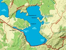 Last weekend was possibly our ‘Kiwi’ summers’ Swansong. It was a gloriously fine, warm, breezy Sunday and my darling wife had to work. Shame! I thought I’d take the opportunity while it was there, to sail on unfamiliar waters. Lake Rotoma – some 25 miles from home, the farthest and clearest of the 19 lakes in the area, was the target. (Google coordinates:- 38 03.04 S , 176 34.18E).