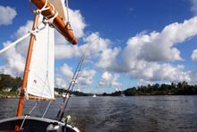 Even Steve appreciates the simplicity of the rigging design as he sets it up by himself all the time. The boat was launched and we set out under cloudy skies with rain in our future.