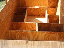 Next we installed the structural supports for the seats and berth area inside the boat’s interior. We over built it and made lots of watertight compartments with only a 2’X 2’ foot well inside. |