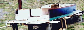 I decided to salvage what I could and make another boat. I figured I could use the sides and some of the bottom and discard the rest. I cut her drake tails off at frame number 1 and cut about 2 feet aft of the stem(all rotten). I cut her in half lengthwise and began anew. I decided to name her "Phoenix" like the mythical bird of old which rose from the ashes and became new.