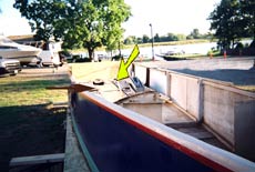 In the picture of the bow (above) you can notice that I used external chine logs. It was the only way to attach the bottom using the old bottom and sides. I now had a complete hull. I put in the many screws to secure the new to the old. Much PL Premium glue was used in the process.