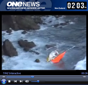 Habit forced me to put the engine in neutral. Resolution listed to starboard and a wave lifted her farther onto the rocks. I saw one just under the forward shroud that I could nearly step off onto. I thought, I can do nothing without a tiller and my neck is more important than the boat. I grabbed the EPIRB, a PLB version, and unclipped the portable VHF from the cockpit coaming. With this equipment in my oillies' pockets, I abandoned ship, stepping out onto the rock and then swimming a couple of strokes to a boulder closer to shore. I climbed up on it and pulled out the radio.
