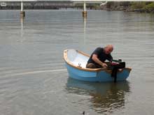 I thought you might enjoy a pic of my newly finished Tender Behind, from your plans. It was not my first boat. I did a Pygmy Coho and a Simmons Sea Skiff and an Uncle John's Pirogue.