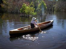 I am nevertheless quite pleased with the Toter's acceptance. As a result, I have designed and built a small canoe called the 'E Z', and today was it's maiden voyage. It performed as expected, no surprises. It is fast in the water and very easy to paddle. Although narrow, it is stable, a function of the shallow V bottom.