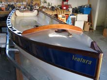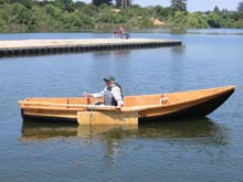 We took it out the following day, Sunday, with a 5hp outboard and she really did well. We took her to a protected bayou to launch so we could see how well she did on flat water as well as out in the bay. She jumped up on a plane with two adults and skimmed along at about 15mph (no GPS with us so it was a guess). She didn’t pound as badly as I had thought. Strange since the flat bottom would make you think she’d pound like a dog. We did a brief jaunt into the bay but at any speed she was a little scary in the chop. Small flat bottomed power boats have no place on open water in anything but clam conditions. Anyway, we have some finishing touches to do but sea trials indicate she will be a fun boat with lots of potential. I’ll send the complete construction story later.