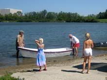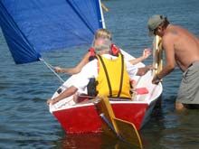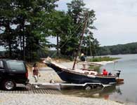 I have attached a couple of pictures of my Stevenson Weekender Launched on July 20th 2008. Her name is Temptress. My son Max is on board in the red life jacket and my wife Patty is keeping and eye on things as we launched.