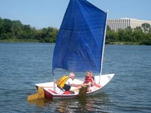 She sailed great the only trouble I had was minor, poor wiring on my part for the motor and a little trouble with the jib. Which caused me to break out the oar. That was not going to work as the wind was too strong so we put the sail back up and sailed back to the boat ramp. Both problems are now repaired. Not to bad for a shakedown cruise. Thanks for all your help with this project. Now what to build next?