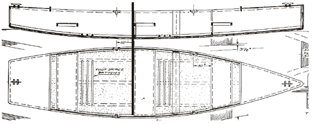 Would you like to go even smaller, say about half the length of America Junior? How about the 14 foot June Bug by Philip Bolger. It has its widest beam and deepest rocker aft of the waterline midpoint.