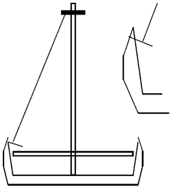 pins, a gaff, square yards, three sets of lines for each sail, and a bowsprit for the head sails.