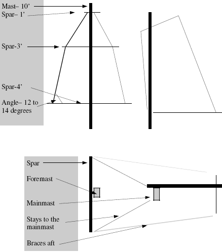 above the sheer and a mainmast of ten feet above the sheer, the masts can be carried on a cartop