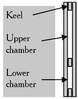 keel is straight. We can make two compartments in the keel, or one. With two the lower one can be free flooding,