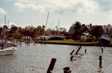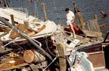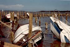 Hurricane Alicia damage at Bal Harbour marina, Clear Lake, Texas. |