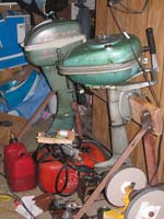 I am not one to mess with an old motor just for the fun of it, but this one has some winning features. It is very light at 37 lbs with the cowl off. This is a bit over half the weight of my 1954 5.5! Removing the cowl tank makes it quite compact as well. This might be an improvement for the schooner, where the 5.5 is rather bulky. It might also be a good backup for the AF4B, since I could keep its weight out of the stern and easily lift it into place when needed.