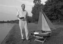 Tony Watling of Wainuiomata, Wellington, New Zealand sails his Footy Gracie at Avalon pond located near to the Television New Zealand facility and is on the committee of the Greater Wellington Marine Model Club. He is 82 years young and enjoys his sailing despite his `dicky ticker’ woes and friendship with friend of the old, `Arthur Itis.’ ailments. The final photograph above shows friend Hans Staal of the Netherlands with his traditionally Dutch Wieranger Aak.