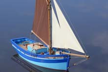If that model in the top left photograph is two feet eight inches long then I am the new President of the United States! Mystery man Harban (remember that story?) finally sent me a photograph of (he says) one of his 28” long free-sailing models. Well, I’ve kinda worked out in the pea- sized topside unit that is my brain (and I did it all by myself mind you!) that Harban (if indeed that is his name?) is having me on, for the model of Angelina (shown) that he sent (no letter with it – the envelope posted in Portugal!) I believe is one of those tourist miniatures, albeit it beautifully carved in light wood and about two and a half inches long sold in fishing areas of Britain (I saw them in Cornwall.) You can judge for yourselves and I think only a picture of someone holding it would convince me otherwise. Sorry Harban but I tend not to believe thee. just a tad mind you! I really hope I am not misjudging him but let me just say, the jury is still out!