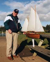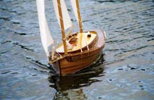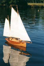 Okay, Ralph Middleton Munroe of New Haven to satisfy his need for a shoalwater vessel capable of seaworthiness in rougher stuff waters did further refine Train’s design which culminated in his own Presto Commodore 40 which gave the boat a deeper body, and a boat heavier and beamier at the sheer which brings us to the one built by Stubbs, 1250mm in length, radio controlled and living up to its name (Jaunty) `sprightly’ indeed.