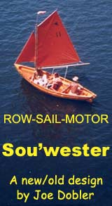 Here is another of Joe Dobler's designs. I don't think it is an exaggeration to say that Joe was ahead of his time. This little stitch and glue rowing/sailing boat proves that to me. |