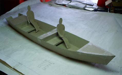 The Texas boat was to have a crew of two and it would best if those two could sleep on the floor of the boat although storage would be needed for a tent also. Plus all the rest for several days including a few hundred pounds of fresh water. So it would have to be different from Raider. No need for that somewhat elaborate V bottomed shape, either, since it was expected to be max hull speed reaching and running in smooth water. So a flat bottom was fine. CL also suggested the simplest possible construction, maybe even be able to build it on site in the days before the race.