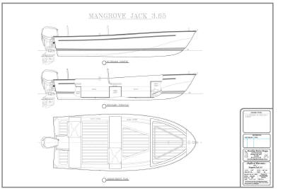 Plans for the Mangrove Jack 3.65 are extremely comprehensive, with 6 sheets (D size or 2ft by 3ft) of drawings, complete written specifications and builders manual. Please read our Back Up Policy. This is an ideal project for the first time boat builder.