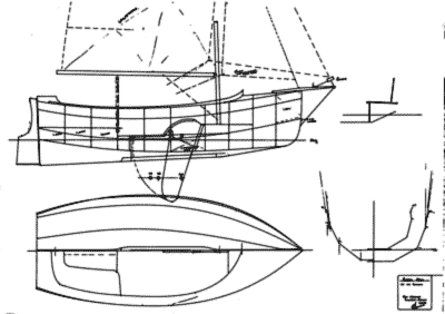 It was with these conditions in mind that I sat down at the drawing board to begin the design of my “pilgrimage boat”. I took the very successful hull shape of the smaller “Houdini“ design, the experimental design from which the ocean going cruisers Swaggie and Sundowner were developed and worked it into the right proportions to give me the size and space that I needed for a 3 week cruise sleeping on board.
