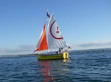 The very first sail The anchor rope lead back to the cockpit and some adjustment needed to the sails but shes looking good. |