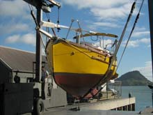 Sitting in the travelift on the way to the water she looks both slippery and sturdy. |