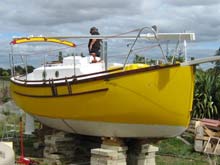The prototype took a couple of years of part time work for the inexperienced builder to complete, and I had great fun helping with the build on occasions, going to the launching, helping to set up the enormously strong rig and fit out the deck and running gear, then sailed with the skipper for a month to assist with the sea trials.