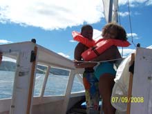 There were a couple of other Summer sails on Nockamixon, alone and with friends, and I would have sailed more in August, but I was busy building a Michalack Toto for and with my son-in-law. This was a snap compared to the year before, and we pushed so we could take both boats up to Lake George. This is the destination which spawned the whole concept of designing a pocket cruiser and using that old Snark Wildflower rig. Come early Sept. 08’ we finally took them both to Trout House, Hague, NY. The lake there is 3 mi. across and the wind comes up 15 - 18 miles or open water from the South at mid-morning most days. We dedicated the Toto the “CamHill” (my daughter) and watched with pleasure as Kareem proved her seaworthiness.