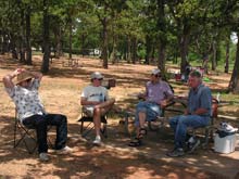 John Wright came without any boat, which is quite unusual, as he has several to choose from.  He was featured on the cover of a recent issue of Messing About in Boats sailing in his Puddle Duck Racer in the Texas 200.  During a respite in the paddling John was involved in some heavy discussion of, most likely, nautical events and vessels.